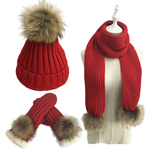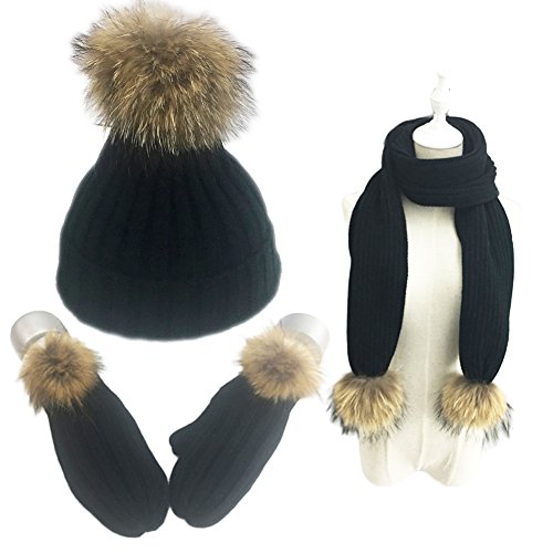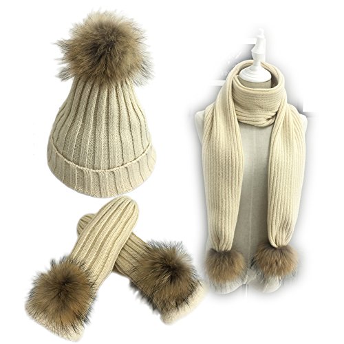 Size: Beanie size: hat high 15.5", pom pom 6"high. Fits head circumference below 23" Gloves size: 10" long, 3.5" wide. Scarf size: 66.5" long, 8" wide.