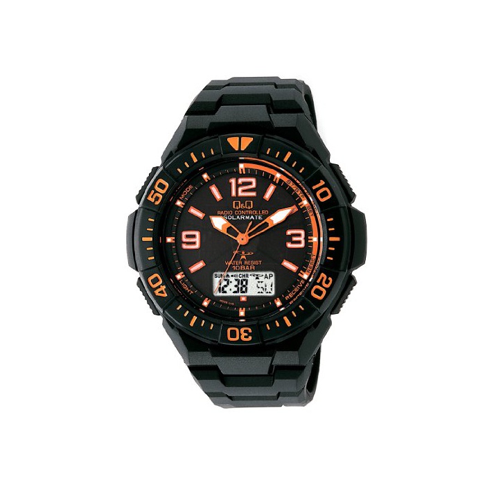 [시티즌 큐 앤드 큐]CITIZEN Q&Q 전파 솔라 손목시계 SOLARMATE (솔라 메이트) 아날로그 표시 크로노그래프 기능 첨부 와 10기압 방수 우레탄 밴드 오렌지×블랙 M