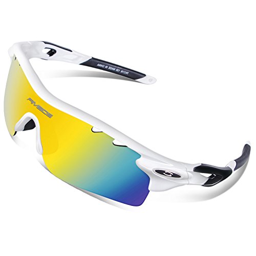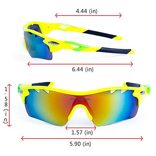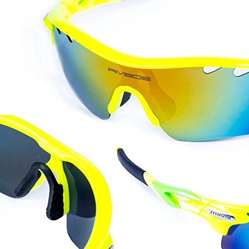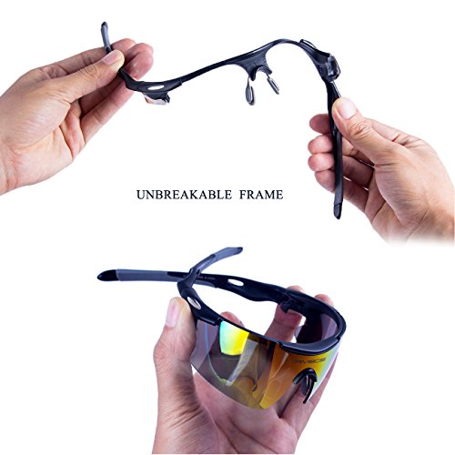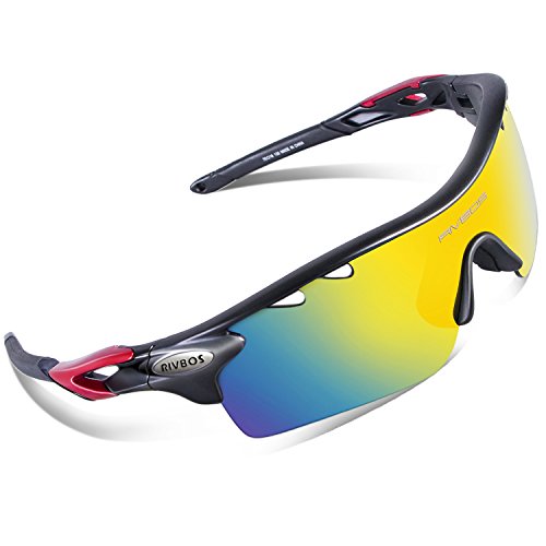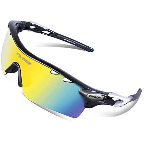 RIVBOS Sport Sunglasses are designed for driving, cycling and all Outdoor Activities. Lens made of shatterproof unbreakable PC material are durable enough for long time using. Only the Main Black Lens are Polarized Lens against strong sunlight, the other 4 lenses are colored sunglasses for different environmental condition.The main lens is multi-color lens, the yellow one is for night activities,the blue one is for beach,the clear one is for windy weather, the black one is polarized for driving and other outdoor activities.