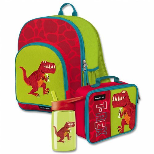 -. Binding : Toy -. Brand : Crocodile Creek -. Feature : Stylish backpack set by Crocodile Creek will give kids what they need to be prepared / Backpack comes with a quality matching lunchbox and water-bottle / Lunchbox and Water-bottle are BPA free and made out of only non-toxic materials / Classic and easy to clean / Backpack: 14"H x 11.5"W; Lunchbox: 7.5"H x 10"W x 3"D; Bottle: holds 16 oz -. Label : Crocodile Creek -. Manufacturer : Crocodile Creek -. MPN : KAPLBSTRE -. PackageQuantity : 1 -. PartNumber : KAPLBSTRE -. ProductGroup : Toy -. ProductTypeName : TOYS_AND_GAMES -. Publisher : Crocodile Creek -. Studio : Crocodile Creek -. Title : Backpack Set - T-Rex