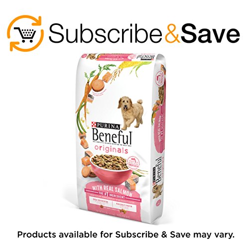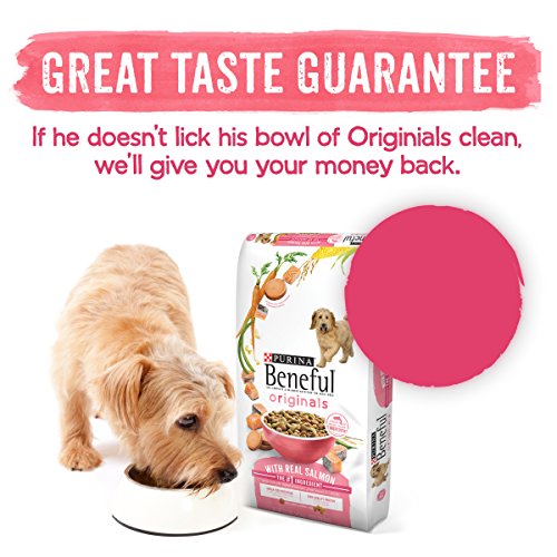 Get your dog's tail wagging at mealtime with Purina Beneful Originals with Real Salmon adult dry dog food. Good ingredients create good food, and that's why this recipe has a perfect blend of real salmon, the number one ingredient, with whole grains and vegetable accents at its base. Omega fatty acids help to maintain a shiny coat, so his natural beauty shows through, and the delicious flavor gives him something to look forward to with each feeding. Watch him enjoy the tempting texture of crunchy kibble and tender bites while knowing he's getting antioxidant vitamin E to help support his healthy immune system. With a variety of high-quality ingredients, Purina Beneful Originals with Real Salmon dry dog food delivers big flavor and 100% complete and balanced nutrition for adult dogs in every bowlful, letting your faithful friend know you care just as much about his health and happiness as he does.
