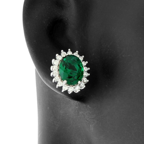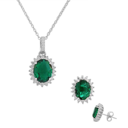 -. Title : 925 Sterling Silver Green Emerald-Tone White CZ Oval Charm Necklace Stud Earrings Set