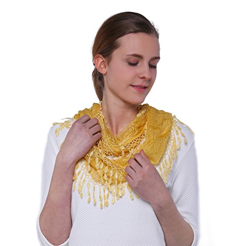 -. Binding : Apparel -. Brand : Scarfand -. Department : womens -. Feature : Material" 100% Polyester / Circumference: 64" / Width: 11" / Brand: Scarfand / Brand History: Scarfand is a vibrant, young, and modern brand. We are located in New York City, which is the heart of fashion. We are constantly checking and updating the latest trends. We made scarves for more than ten years. We have our own design team and manufactures, so we can provide fashionable and high quality scarves with reasonable P.R.Ice. -. Model : SAE-2632 -. PackageQuantity : 1 -. ProductGroup : Apparel -. ProductTypeName : ACCESSORY -. Size : One Size -. Title : Scarfand's Delicate Lace Infinity Scarf with Teardrop Fringes