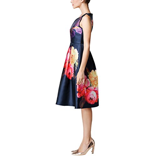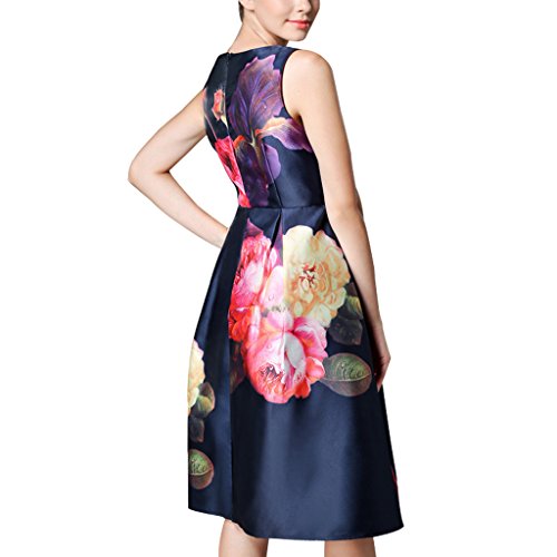 Flower printed.Boat neck.Slim fit.One lining layer inside.Back or Side Zipper closure.High waist line---below Chest area to highlight a tall and slender effect.