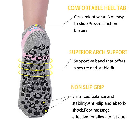 -. Feature : Comfort: Non-skid, all-grip, no-slip socks,elastic material with high thread knitting technique comfortably stretches over foot for yoga, barre, pilates and workout. Towel like bottom provides comfort for sports. / Non-slip grip: Non slip dots on the bottom of the socks contribute to shock absorption and cushioning. Provides stability and balance to have better control of your body movements and avoid injuries. / Hygienic: Natural cotton absorbs sweat keeps your feet dry and healthy. Provide a barrier between your foot and the floor or mat. Helps to protecting your feet from unwanted dirt and germs. / Multi-role: Yoga socks non slip fit (Women's Shoe Size 5 -9 and Men's Shoe Size 4-8). Suitable for working as yoga socks, barre socks, pilates socks, ballet barre socks, dance socks, fitness exercise socks, yoga shoes. Provide you with a comfortable experience on any occasion. / Guaranteed: If there is anything you don't like about these socks, size, color, quality etc, Please do not hesitate to contact us in the first time.We will do our very best to meet your request and solve your problem quickly and efficiently!