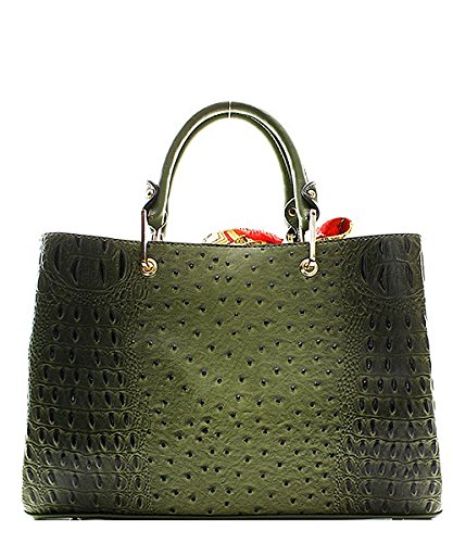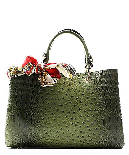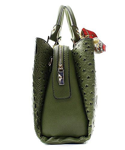 -. Title : Vegan Faux Leather Ostrich Satchel Shoulder Handbag Olive Green