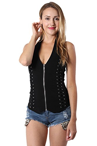 (Lydia USA)/Women/Outerwear/DIRECT FROM USA/Sexy Side Crisscrossed with s tretch Fitted Zipper Halter Top