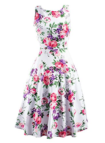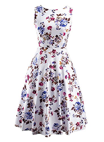 -. Title : MABELER 50s Retro Rockabilly kleid vintage Stil Rundausschnitt Partykleid Cocktailkleid