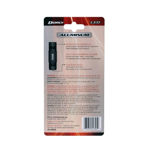 Dorcy 41-4305 3-AAA Battery Operated Aluminum LED Flashlight, 70-Lumen, Black