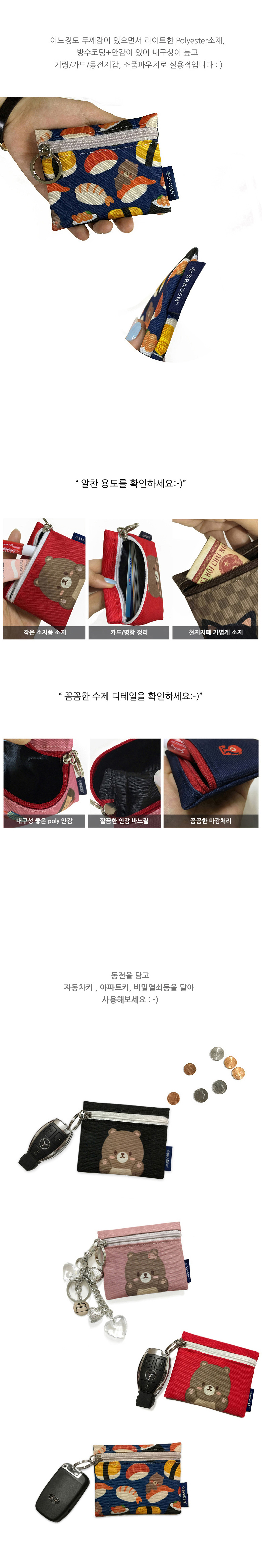 폴리에스테르원단 제작/안감이 있는 수제 키링-카드지갑입니다 :-)
