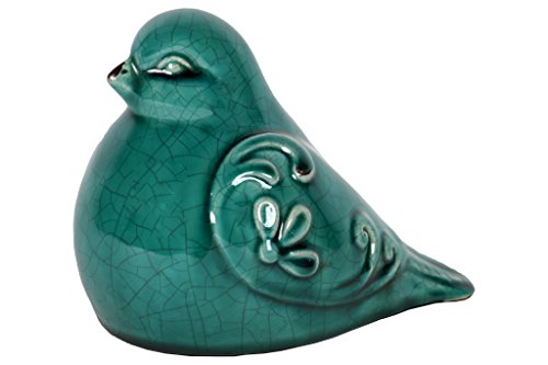 Urban Trends 28079 Ceramic Bird Figurine with Embossed Floral Design Gloss Finish Turquoise