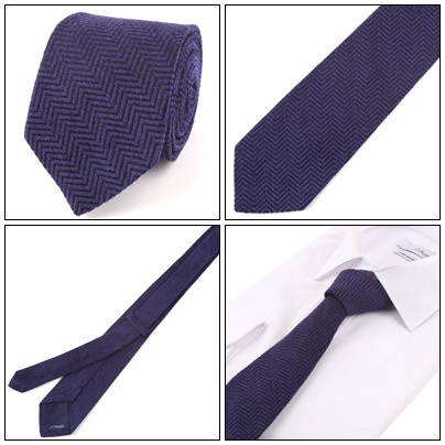 계절감이 돋보이는 헤링본 조직의 솔리드 넥타이