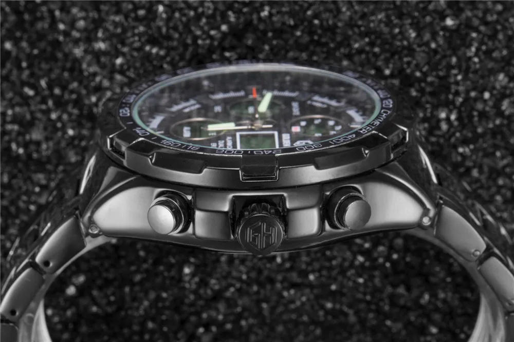 Feature:Water Resistant,LED display,Stop Watch,Back Light,Complete Calendar,Shock Resistant,Chronograph,Luminous Hands,Perpetual Calendar,Auto Date,Week Display,Alarm