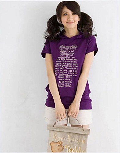 -. Feature : 【カラー】: グリーン/パープル/ブラック/ピンク / 【M】:肩幅34cm 胸囲80cm 着丈60cm 袖丈17cm 【L】:肩幅35cm 胸囲82cm 着丈62cm 袖丈17cm 【XL】:肩幅36cm 胸囲86cm 着丈64cm 袖丈17cm / カジュアルなレディース、半袖のフード付 Tシャツです。春や秋はインナーシャツの上に重ね着できますし、半袖なので夏は一枚でばっちり着こなせます。カジュアルなコーディネートにオススメの一着です。 / 文字プリントがクマの形になっていて、遊び心いっぱいのカラフルフード付きTシャツです。キュートなデザインなので友達とおそろいの双子コーデ等、幅広い用途でご着用いただけます。 / デザイン上タイトな仕上がりになっています。通常サイズのワンサイズ上、またはゆったり着たい方はツーサイズ上をお選び下さい。