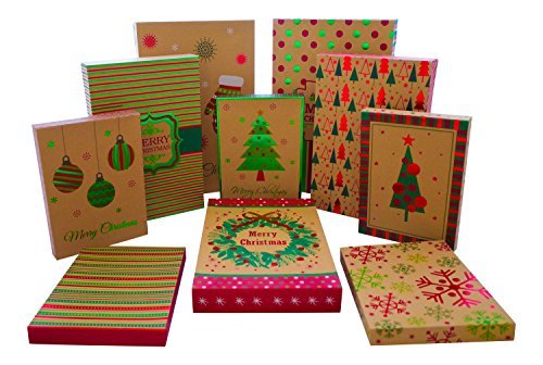 Studio : ALEF Publisher : ALEF Binding : Health and Beauty Product Description Take the hassle out of gift giving. These elegantly designed Christmas boxes will present that perfect gift in a way that shows the time and thought you put into it! Each set comes in 3 different sizes to accommodate each gift. 2 Robe Gift Boxes 17 x 11 x 2 1/2 inches (43.18 x 27.94 x 6.35 cm). 3 Shirt Gift Boxes 14 1/4 x 9 7/16 x 1 7/8 inches (36.20 x 23.97 x 4.76 cm). 5 Lingerie Gift Boxes 10 5/8 x 7 3/4 x 1 1/6 inches (27 x 19.68 x 2.86 cm). Boxes include designs with Christmas trees, ribbons, tree ornaments, wreaths, snowflakes, polka dots, stripes and gloves. 0