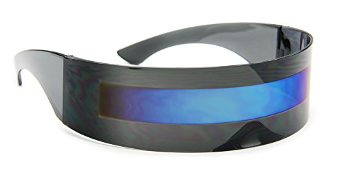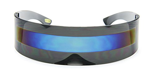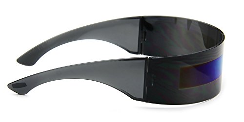 Futuristic Black Shield Sunglasses Cyclops Monoblock Blue Mirror Lens