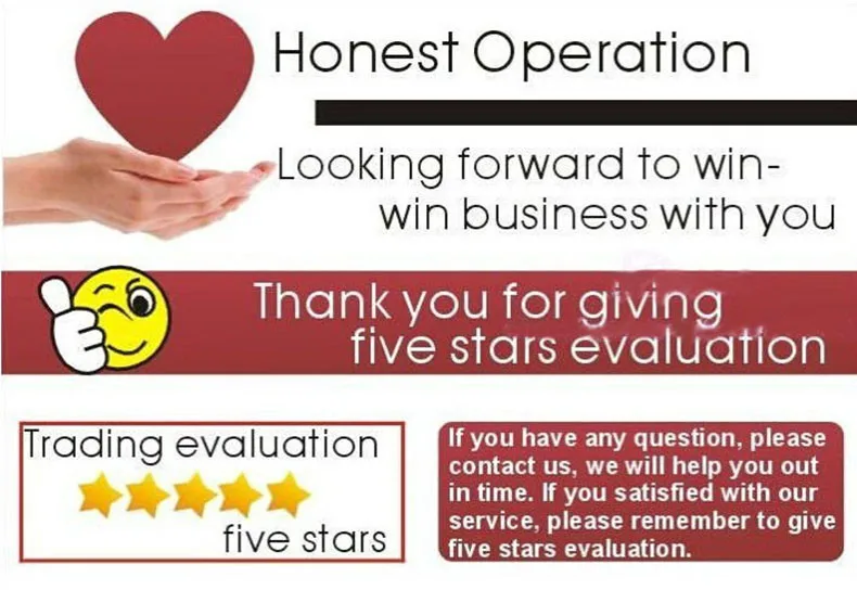 あなたが商品に満足してと私たちのサービス、ください取るを残すために時間が正のフィードバックで5星、私たちは喜んであなたのために同じ。を残す前にお問い合わせください中性(3星)または負(1-2星)フィードバック。私たちは解決するために全力を問題と、あなたに幸せなショッピング気分here.あなたは親切に理解!