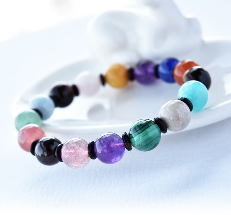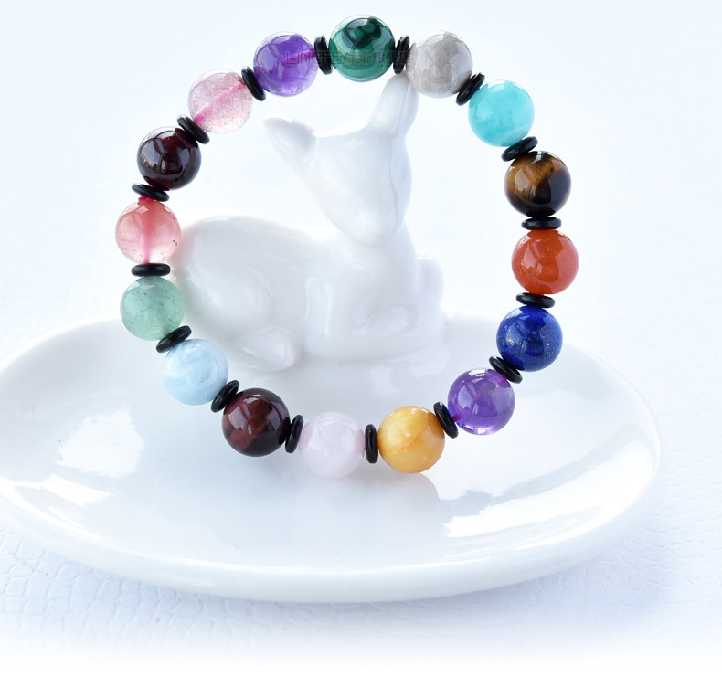 多宝手串草莓晶南红玛瑙粉水晶海蓝宝虎眼石天河石青金石手