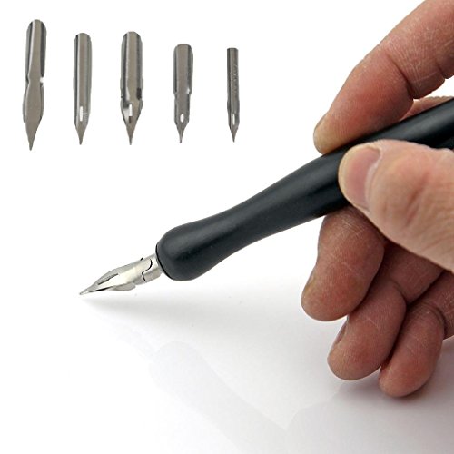 -. Feature : A comic kit: 2 pen holders, 5pcs nibs and a eraser, for your various needs / Ideal for lettering, calligraphy, poster making, cartooning, sketching, mapping / To develop your skills and express your ideas through beautiful designs / Material: Plastic+ metal / Size: pen handle Length about 12.3cm