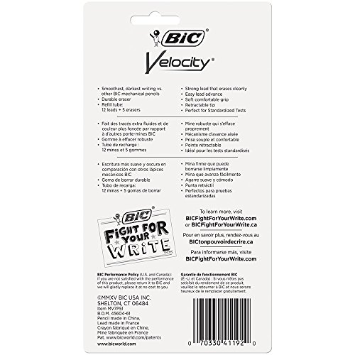 BIC Velocity Original Pencil Medium Point (0.7mm) 5-Pack Blister, Black (MV7P51)