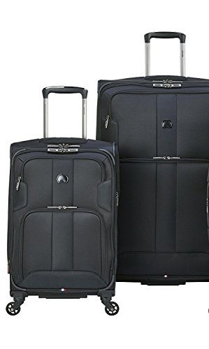 Studio : Delsey Luggage, Inc. Publisher : Delsey Luggage, Inc. Binding : Apparel Product Description This 2 piece luggage set by DELSEY is part of the sky max collection, and includes a 20.5" Spinner carry on and a 25" spinner suitcase. Each bag has the following features. 9 total pockets are included for exceptional storage: three front pockets for maximum organization, side pocket for water bottle or small accessory, back pocket for magazines, mesh pocket and wet pocket in lid, shoe pockets in main compartment. Guardian self repairing interlocking zippers. Cushioned neoprene top and side carry handles. Easy to grab bottom handle. Integrated id tag. Interior tie-down straps. Expansion for maximum packing flexibility. Dual position trolley system for 2 or 4 wheel use. 0