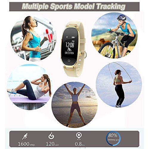 -. Title : Fitness Tracker, DG2CHU Heart Rate Monitor Women Activity Sleep Monitor Waterproof Pedometer Smart Bracelet for iOS & Android