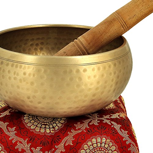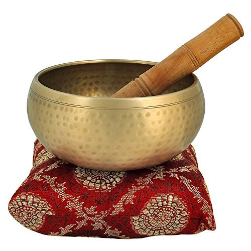 5 Inches Bell Metal Tibetan Buddhist Singing Bowl Musical Instrument for Meditation with Stick and Cushion - Superior Quality