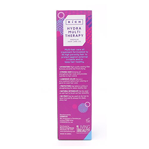 RICH HAIR TREATMENT OIL, HYDRA MULTI THERAPY CONDITIONING SERUM - NATURAL FRIZZY HAIR DETANGLER WITH GINSENG OIL FOR STRONGER HEALTHIER SHINIER HAIR, 5.74 OZ