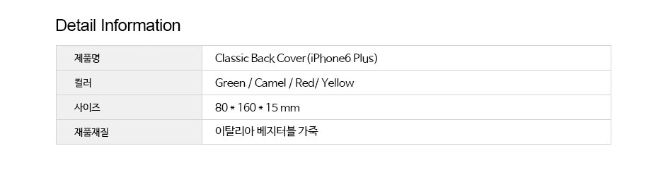 상품명 : 클래식 백커버 아이폰6S Plus 가죽 케이스 옐로우