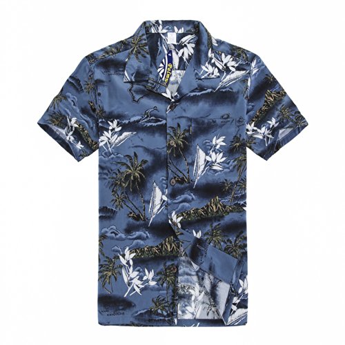 -. Title : Palm Wave Men's Hawaiian Shirt Aloha Shirt