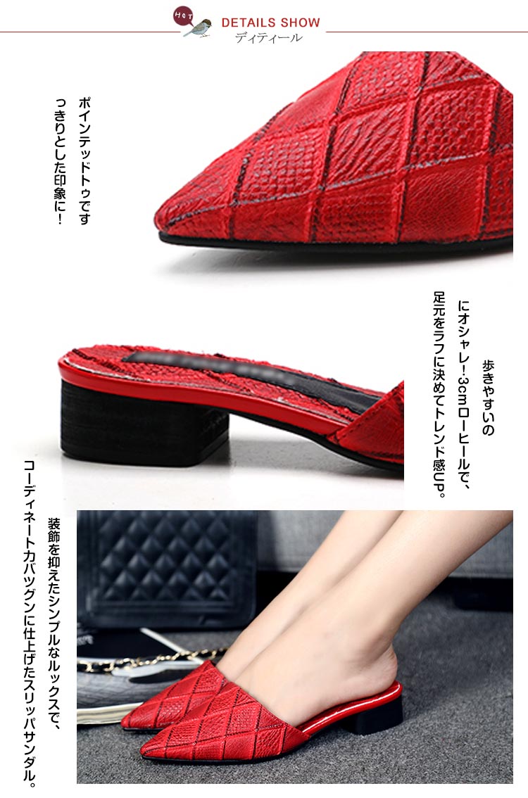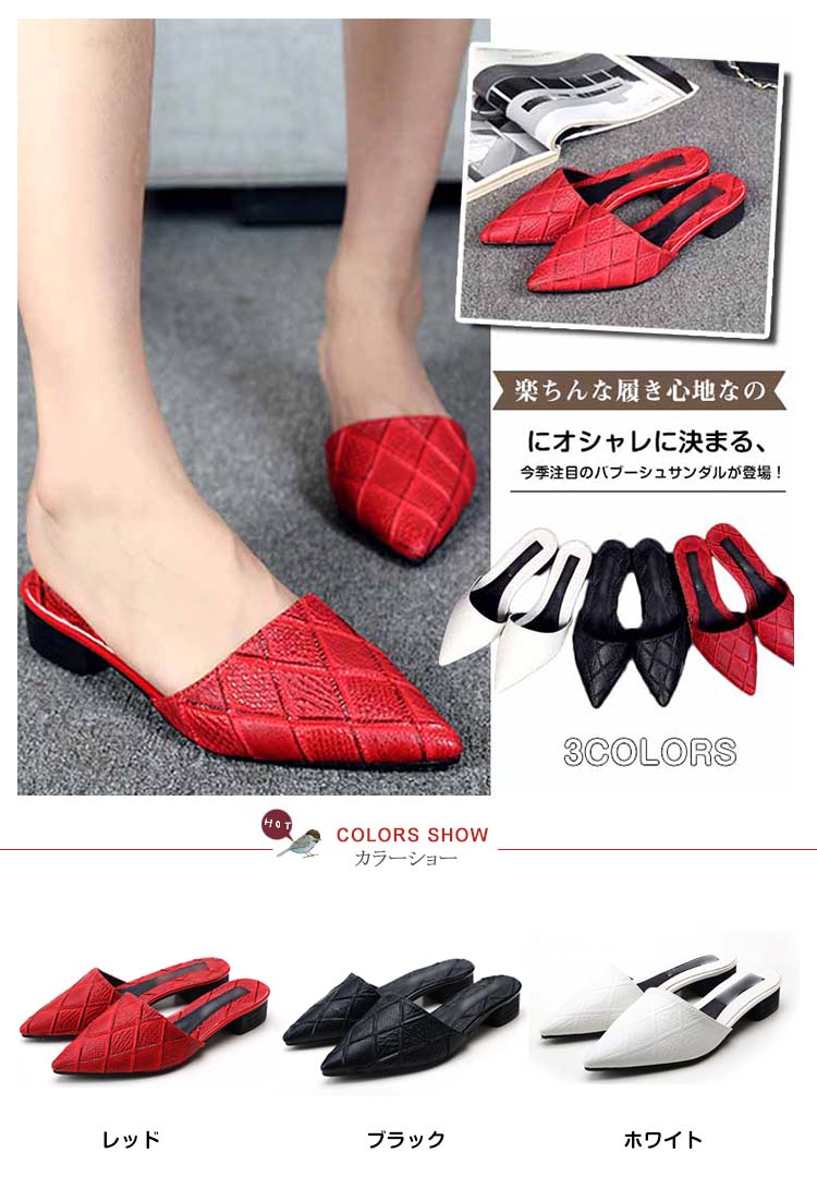 | 楽ちんな履き心地なのにオシャレに決まる、今季注目のバブーシュサンダルが登場!無駄な装飾を省いたシンプルなデザインが、どんなコーデとも相性バツグン◎ スマートなポインテッドトゥがきちんと感を演出し、すっきり着用していただけます。 トレンド顔のローヒールシューズは、モードカジュアルな雰囲気でいつものコーデも今年っぽく演出できるマストバイアイテムです! | |