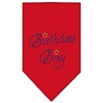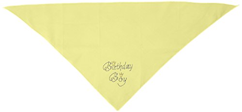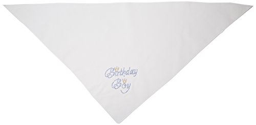 -. Binding : Misc. -. Brand : Mirage Pet Products -. Feature : Small is a 14" x 14" square that is easily folded in half to create the triangle look needed. / Large is a 22" x 22" x 31" pre cut triangle. -. Label : Mirage Pet Products -. Manufacturer : Mirage Pet Products -. PackageQuantity : 1 -. ProductGroup : Pet Products -. ProductTypeName : PET_SUPPLIES -. Publisher : Mirage Pet Products -. Studio : Mirage Pet Products -. Title : Birthday Boy Rhinestone Bandana