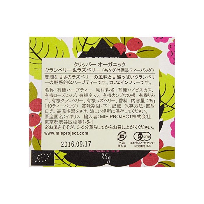 원본상품명: クリッパ? オ?ガニックフル?ツインフュ?ジョン クランベリ?&ラズベリ?(個?10P)