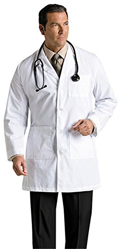 Landau Men's 3-Pocket Poplin Staff 35 1/2"; Lab Coat White superior poplin, 44