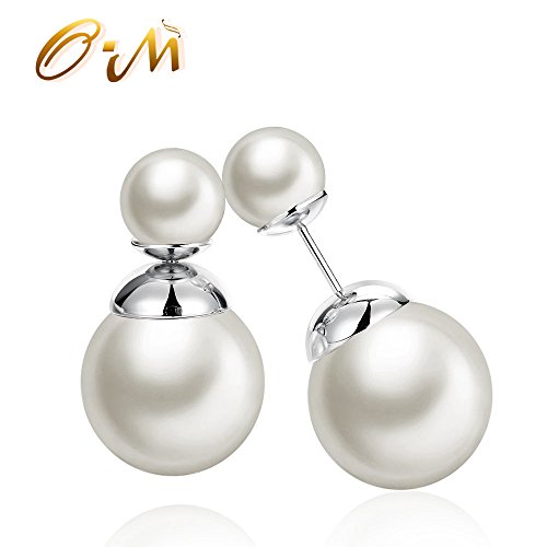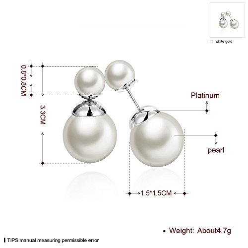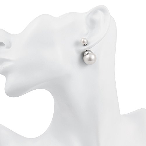 Onairmall Double Sides Earring Two Ball Beads Pearl Stud Earring Women Fashion Jewelry (White)