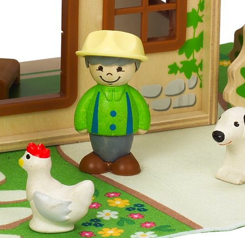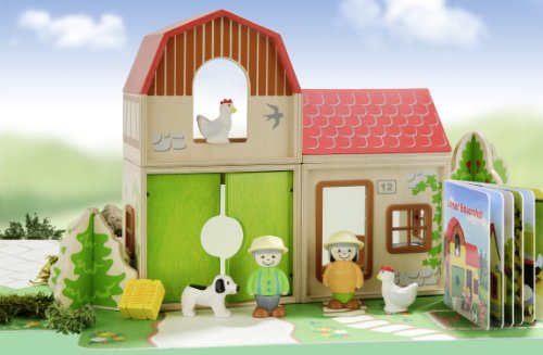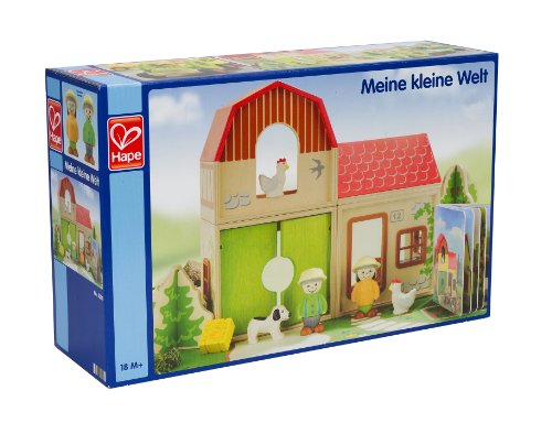 - Feature : Wooden figures, furniture and three stackable farm rooms encourage endless configurations and non-stop storytelling / Buildings, vehicles and accessories are made of sustainable wood / A sturdy 12 page cardboard book printed in soy ink gets imaginations humming with a story about the farmer's morning / Figures are made of a combination of fasal & solid wood. Hape finishes are all non-toxic, child safe, and of the highest quality / Hape has been a leader in designing and manufacturing high quality baby and children's toys made from sustainable materials since 1986