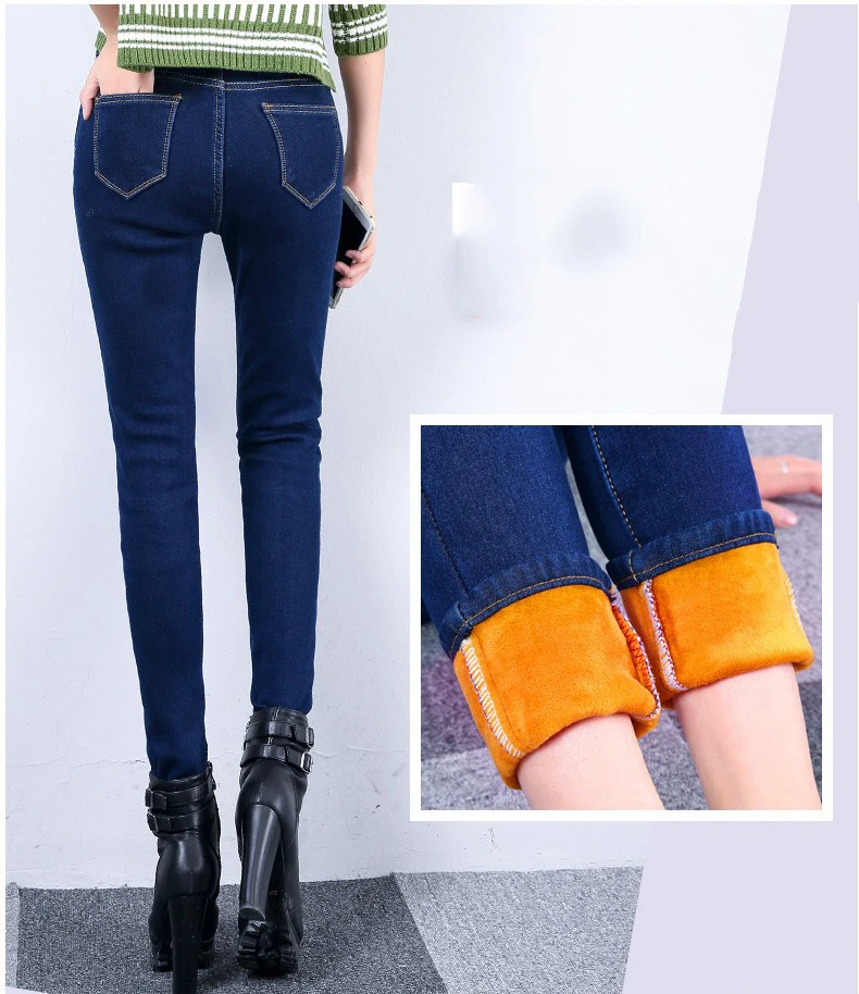 Fashion women warm jeans:Free shipping