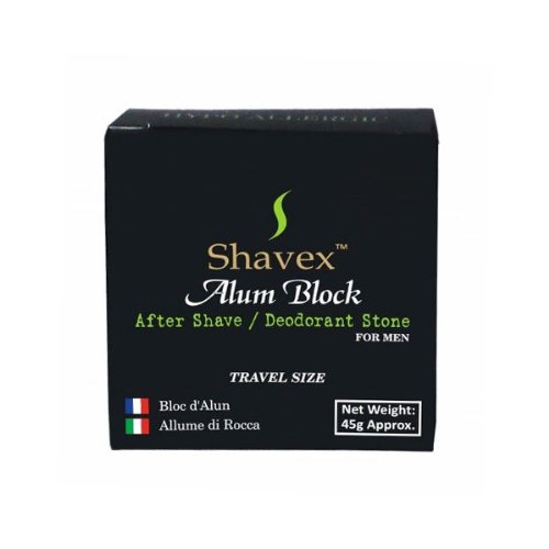 Shavex Alum Blocks are crystal cubes formulated from naturally occurring Alum deposits. Shavex Alum Blocks have been medically tested for being hypo-allergic and skin friendly and are suitable for all skin-types. What makes Shavex Alum Blocks advanced and 'different'? Shavex Alum Blocks are solid translucent Alum cubes in comparison to white powdery texture of regular Alum Blocks. The translucency of our 'evolved' Alum Blocks is obtained by further heat-treating regular white Alum Blocks skillfully. The process results in product's longer life and non-cracking tendency. The resultant Shavex Alum Blocks are extremely popular for their distinctive property of leaving absolutely 'no-residue' on skin upon application. What does it do? Application of moistened Shavex Alum Block on shaved-skin cools down razor burn instantly, cures minor nicks and blemishes and closes open pores, leaving behind smooth and even skin. Shavex Alum Blocks work equally well with electric razors. In short, a Shavex Alum Block is an excellent Post-shave Healer, Facial Skin Toner, Natural Deodorant and a handy Antiseptic Tool!Feature