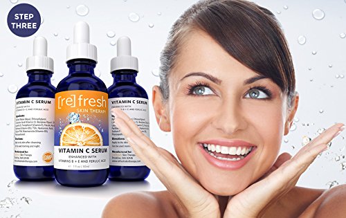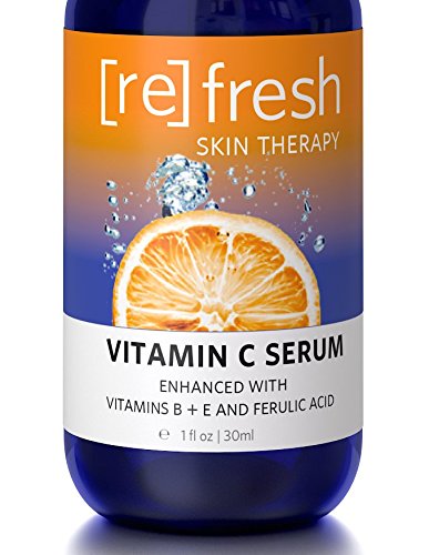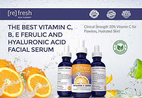 A glowing complexion can finally be yours! Our Maximum clinical strength antioxidant formula drenches dry, dull skin with a power anti-aging vitamin cocktail. Studies show skin protection benefits to be much more effective when using a combination of both vitamin e and c, rather than using each vitamin alone. Anti-aging benefits Vitamin c 20%: clinical strength stable vitamin c boosts skin's collagen production to plump and firm skin and reduce the appearance of fine lines and wrinkles. Vitamin e: protects skin from scarring, age spots, and increases skin's hydration levels Vitamin b3 + b5: lighten dark spots, boost skin hydration and collagen production Frolic acid: powerful antioxidant prevents free radical damage to skin cells Try the vitamin c serum enhanced with vitamins b +e and frolic acid risk-free. Complete skin rejuvenation, moisturizing, and lightening treatment for flawless skin. Fresh, rejuvenated and healthy skin with no acne and wrinkles is just a click away so click 'add to cart' to order now! As always, refresh skin therapy's products are: vegan, cruelty free, free from added fragrances, colors and GMOs. Alcohol free and gluten free. Made in an FDA inspected production facility CGMP.Feature