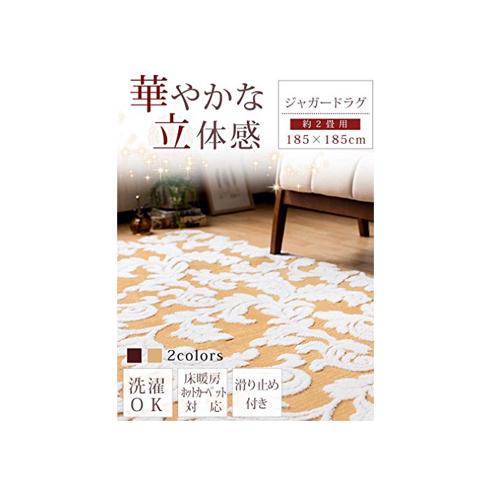 원본상품명:【高級感あふれる立?ジャガ?ド織りラグマット 185×185cm(約2?用)】 ?群に柔らかい上質なボア生地使用 ホットカ?ペット床暖房?? 安心ノンスリップ加工? 洗えるタイプ 華やかな織物ラグ