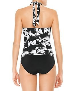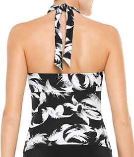 This one-piece halter swimsuit has Spanx's revolutionary new floating underwire cups with removable foam pads that are engineered to custom-fit the bust. The high-neck styling with goldtone slide bar is sexy, while the eye-catching print makes your figure look flawless.Feature