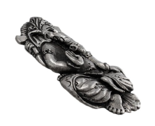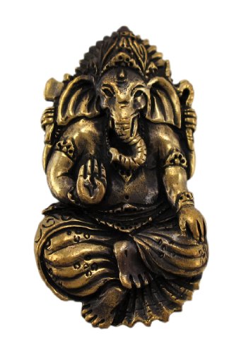 Studio : Zeckos Publisher : Zeckos Binding : Jewelry Product Description The son of Shiva and Parvati, Ganesha has an elephantine countenance with a curved trunk and big ears, and a huge pot-bellied body of a human being. He is the Lord of success and destroyer of evils and obstacles. He is also worshiped as the god of education, knowledge, wisdom and wealth. This beautiful pendant features Lord Ganesh in a meditating pose, sitting on a lotus flower. The pendant measures 1 3/4 inches tall, 1 inch wide, with a hidden bail that can fit a chain up to 5mm thick. It`s available in lead free pewter or brass finishes. 0
