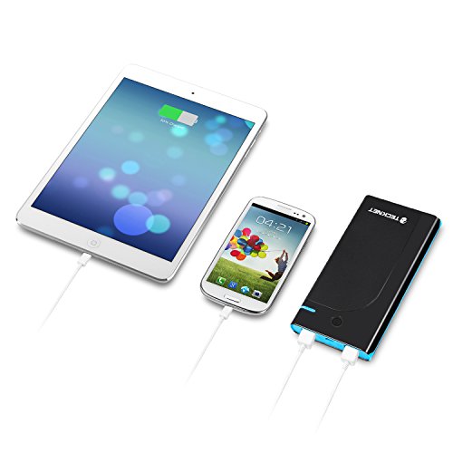- Feature : 10000mAh Advanced Li-Polymer Battery Technology, Charges all iPhone four to five times, a Galaxy S3 thrice, or an iPad / iPad 2 once.% charging efficiency: Energy efficiency rate 10% above than other Brand batteries. Constructed using Premium Samsung Grade A cells and premium microchips to ensure the highest quality / 2 USB Outputs: Charges one or 2 devices at maximum speed (5V 2.1A/1A) / A lightweight, unassuming solution to life's daily power needs (1.32cm thick). 4 LEDs display just how much juice you've got left. Reliable lithium polymer core ensures quality, supplying you with more than 500 charge cycles during the course of its life. / 89% charging efficiency: Energy efficiency rate 10% above than other Brand batteries. Constructed using Premium microchips to ensure the highest quality / Package contents: TeckNet iEP10000 External Battery, Micro USB Charging Cable, instruction manual
