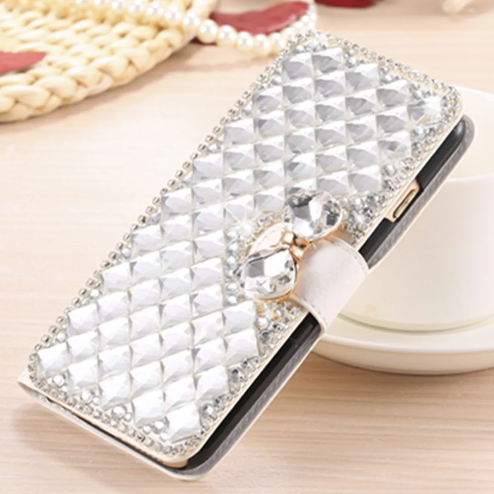 Feature:Rhinestone Flip Cover + Stand Function + Wallet Style + Card Slot