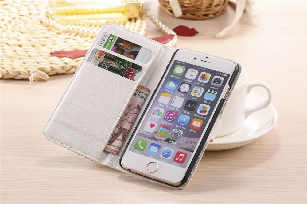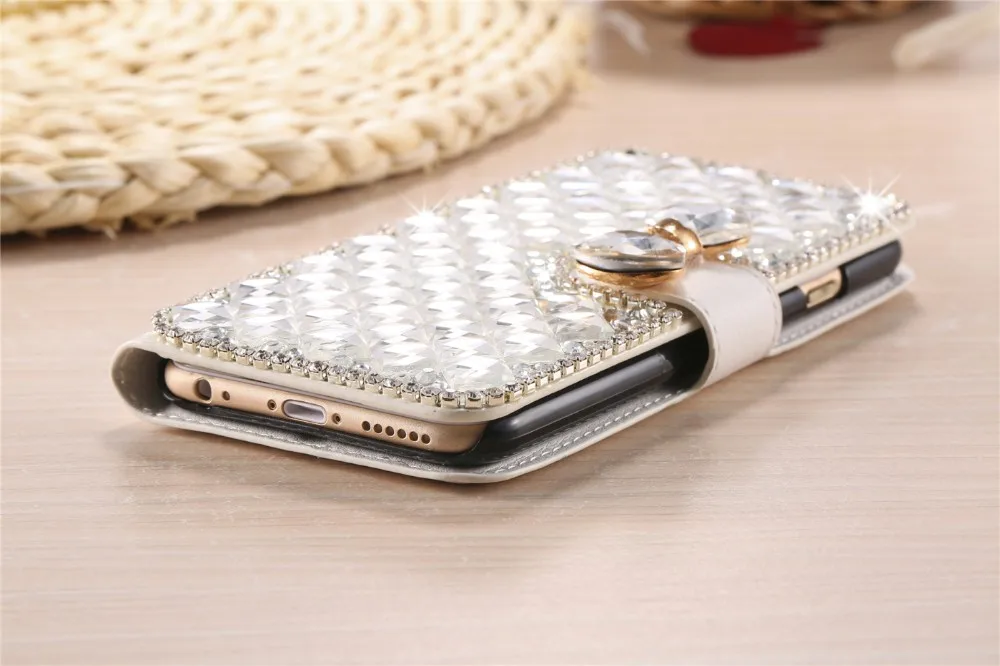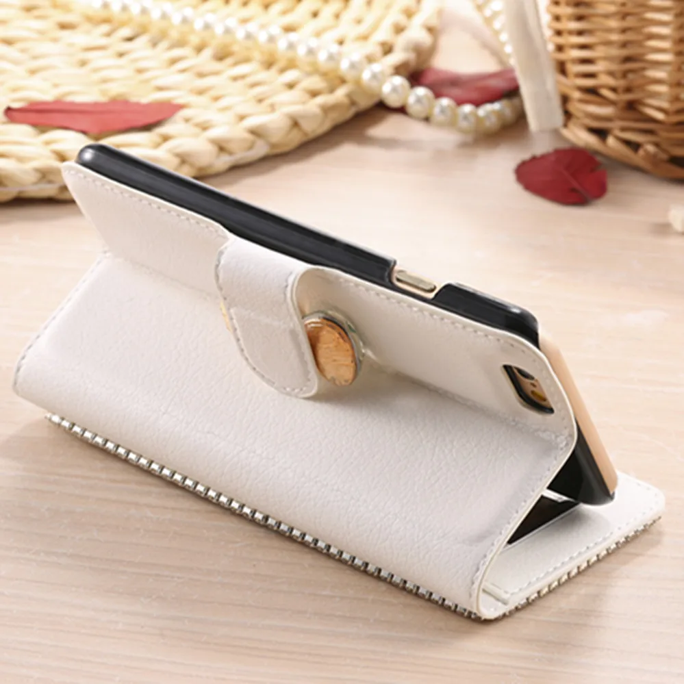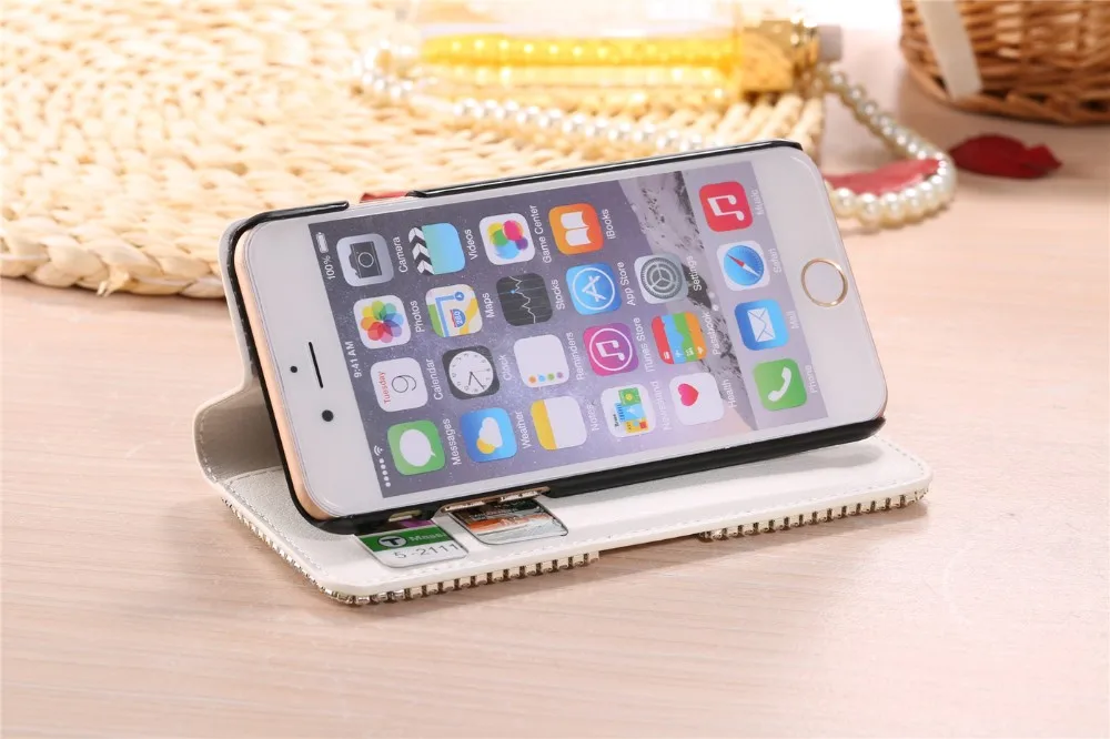 Features:Luxury Bling Diamond Rhinestone Wallet Leather Case With Kickstand