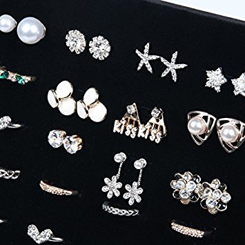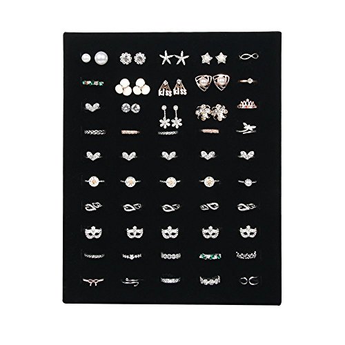 BOCAR Velvet 50 Slots Ring Display Organizer Holder Stand (50JZZ-black)