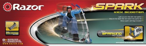- Feature : Scooter with foot controlled sparking mechanism / 20% more sparks than other brands / Includes one installed and one replacement cartridge / Aircraft grade aluminum tube and deck / Easy to fold and carry