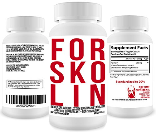 -. Binding : Health and Beauty -. EAN : 0646437646819 -. Feature : Premium supplement and slimming fat burner will make you fit fast. Top rated carb blockers / Verified Organic Forskolin - no fillers binders or artificial ingredients. Potent thermogenic / Forskolin fuel weak metabolism and break down stubborn body fat while boosting energy. Gluten free! / Reviews show it to be an awesome safe belly buster. Used in sports nutrition for extreme results / Standardized to 20% and manufactured in USA in an FDA Certified facility. Top rated pill and Non GMO -. IsAdultProduct : 0 -. Label : Pure Giant Supplements -. LegalDisclaimer : No statements made about this supplement have been evaluated by the Food and Drug Administration. This product is not intended to diagnose, treat, cure or prevent any disease. Pregnant or nursing mothers, children under the age of 18, and individuals with a known medical condition should consult a physician before using this or any dietary supplement. Actual product packaging and materials may contain more and different information than what is shown on our website. We recommend that you do not rely solely on the information presented and that you always read labels, warnings, and directions before using or consuming a product. Please see our full disclaimer below. -. Manufacturer : Pure Giant Supplements -. ProductGroup : Health and Beauty -. ProductTypeName : HEALTH_PERSONAL_CARE -. Publisher : Pure Giant Supplements -. Studio : Pure Giant Supplements -. Title : Verified Forskolin Extract 250mg 60 Capsules - All Natural Organic Maximum Strength Herbal Weight Loss Pills Appetite Control & Suppressants Analyzed Diet Pills That Work Fast for Women Men's Dieting -. UPC : 646437646819
