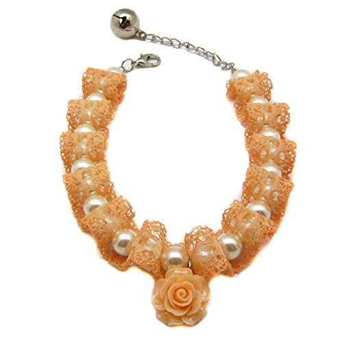 -. Title : Alfie Pet by Petoga Couture - Wincy Pearl Lace Necklace for Dogs and Cats with Fabric Storage Bag - Color: Pink