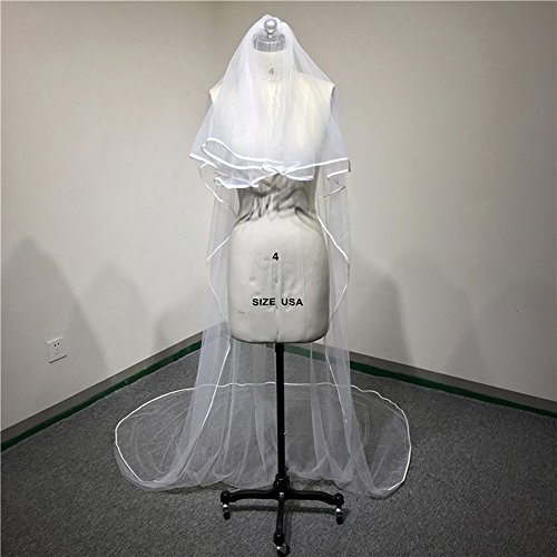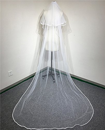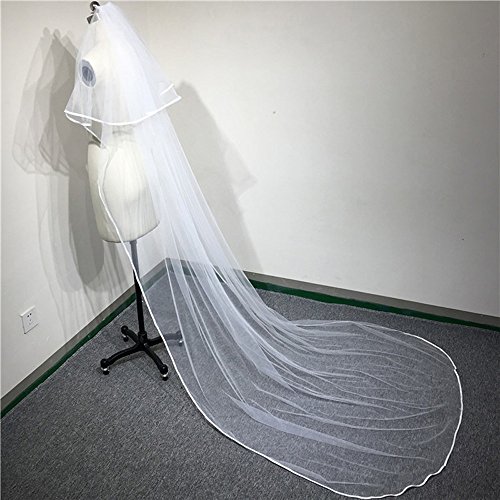 (Lavendel Bridal)/Accessories/Scarves/DIRECT FROM USA/Lavendel Two Layers Ribbon Edge Cathedral Length 3M Wedding Veil With Comb